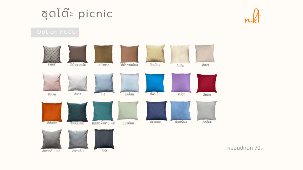 All, A5 - On ground/ Kid's party, โต๊ะ เก้าอี้ ชุด Picnic Full Set ชุดPICNIC FULL SET (8 ที่นั่ง): ราคา/วัน 1,500 บาท/ชุด ประกอบด้วย โต๊ะไม้ขนาด 240 x 90 x 35 cm 1 ตัว, หมอนอิง 8 ใบ (เลือกสีได้), ผ้าแทบรันเนอร์ คาดโต๊ะ 1 ผืน (เลือกสีได้), และผ้าปูรองนั่ง 2 ผืน ใบเสนอราคา แชท